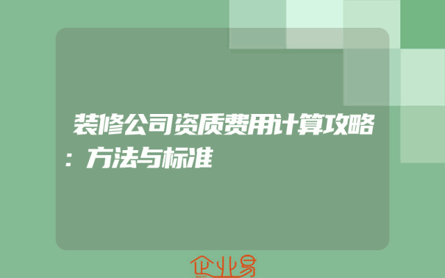 - 装修公司资质费用计算攻略:方法与标准