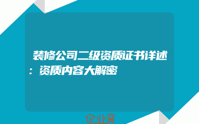 - 装修公司二级资质证书详述:资质内容大解密