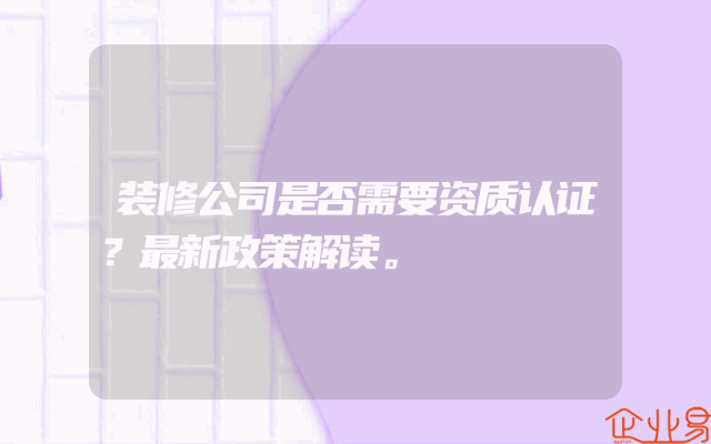 - 装修公司是否需要资质认证?最新政策解读。