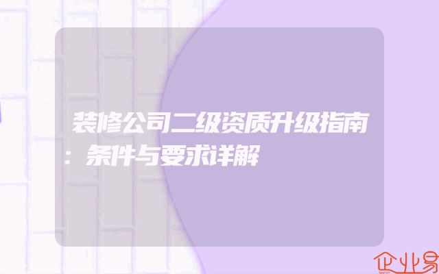 - 装修公司二级资质升级指南:条件与要求详解