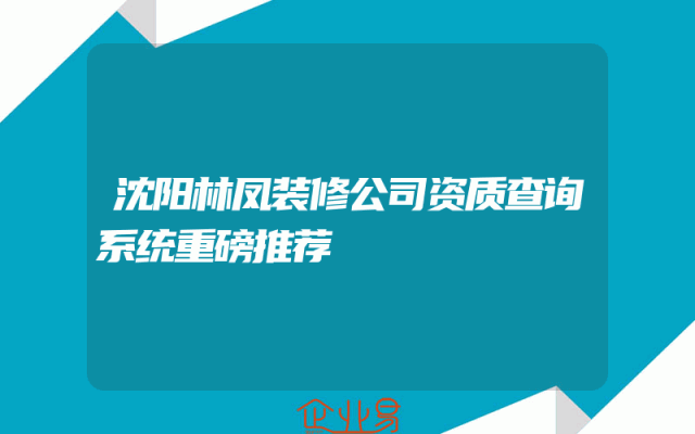 - 沈阳林凤装修公司资质查询系统重磅推荐