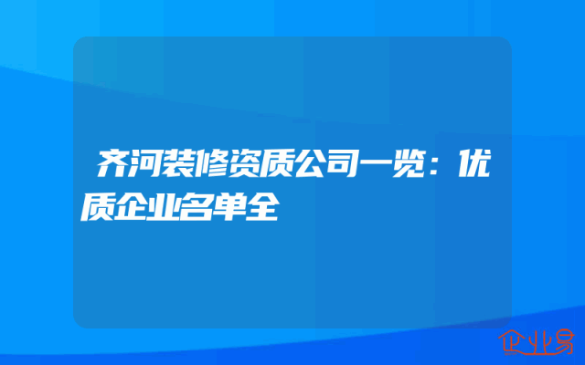 - 齐河装修资质公司一览:优质企业名单全
