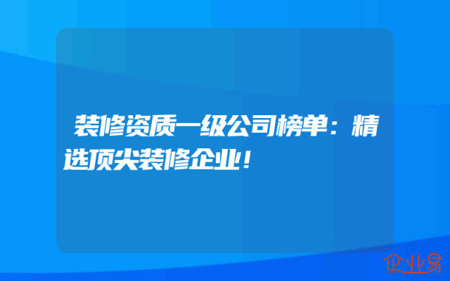 - 装修资质一级公司榜单:精选顶尖装修企业!
