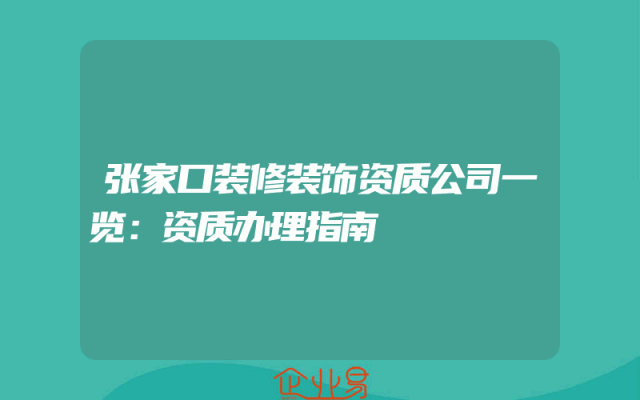 - 张家口装修装饰资质公司一览:资质办理指南