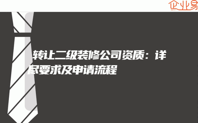 - 转让二级装修公司资质:详尽要求及申请流程一、了解二级装修公司资质的重要性在当今竞争激烈的装修市场,企业资质的重要性日益凸显。拥有二级装修公司资质,不仅能够提升企业的竞争力,还能为客户提供更优质的服务,增强客户信任度。因此,当考虑转让公司时,