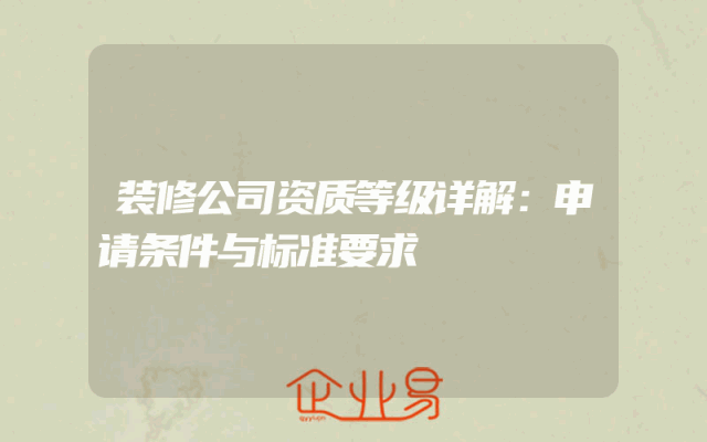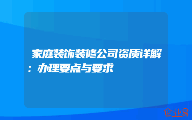 - 家庭装饰装修公司资质详解:办理要点与要求