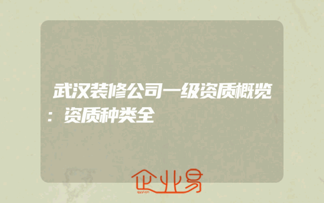 - 武汉装修公司一级资质概览:资质种类全解析一、武汉装修公司一级资质概述在武汉,从事装修行业的公司必须具备相应的资质,其中一级资质为最高级别,代表了公司在设计、施工、管理等方面的综合实力。一级资质是装修公司实力的体现,对于客户而言,选择具备一级