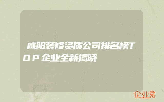 - 咸阳装修资质公司排名榜TOP企业全新揭晓