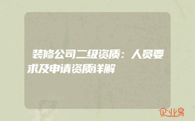 - 装修公司二级资质:人员要求及申请资质详解一、装修公司二级资质概述在我国,装修公司资质分为多个级别,其中二级资质对于装修公司而言是一个重要的里程碑。二级资质代表着公司在装修行业的实力与信誉,是承接大型项目的基础。人员要求与资质申请都是获得二级