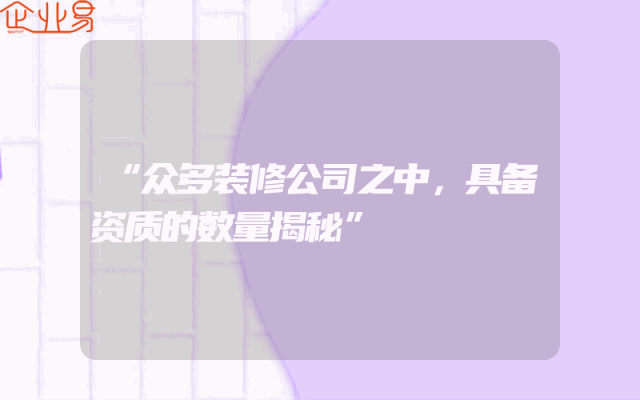 - 众多装修公司之中,具备资质的数量揭秘一、市场概况下的装修公司数量随着城市化进程的加快,装修行业日益繁荣,各类装修公司如雨后春笋般涌现。据最新数据显示,市场上的装修公司数量已经相当庞大。这些公司规模不一,服务水平各异,共同构成了装修行业的现状