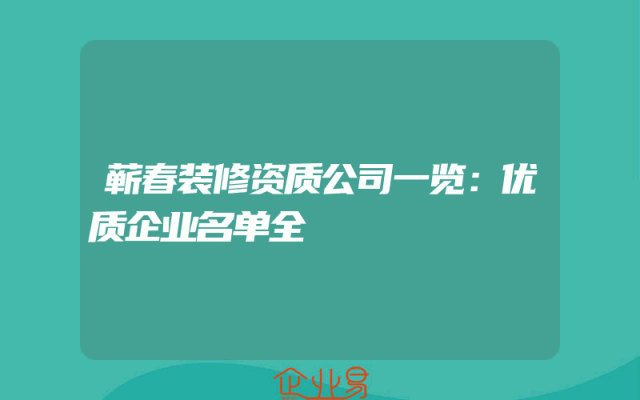 - 蕲春装修资质公司一览:优质企业名单全解析一、引言随着城市化进程的加快,装修行业日益繁荣,蕲春地区的装修企业也如雨后春笋般涌现。对于寻求高品质装修服务的企业和个人而言,了解具备相应资质的优质装修公司至关重要。本文将为您呈现蕲春地区的优质装修资