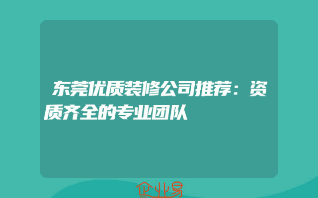 - 东莞优质装修公司推荐:资质齐全的专业团队