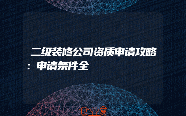 - 二级装修公司资质申请攻略:申请条件全解析一、资质申请概述在建筑装饰行业,随着市场竞争的加剧,拥有资质已成为企业赢得客户信任的关键。对于装修公司而言,申请二级资质不仅能够提升自身形象,更是承接大型项目的必备条件。本文将详细介绍二级装修公司资质