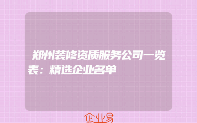 - 郑州装修资质服务公司一览表:精选企业名单一、引言随着城市化进程的加快,郑州的装修行业蓬勃发展,市场上涌现出众多装修资质服务公司。对于需要装修的客户而言,如何选择一家专业、可信赖的公司成为了一大难题。本文将为您呈现郑州装修资质服务公司的精选名