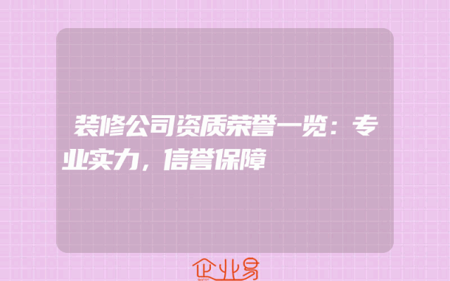 - 装修公司资质荣誉一览:专业实力,信誉保障一、公司概况与资质荣誉在装修行业,我司凭借多年的深耕与不懈努力,已发展成为一家集设计与施工于一体的综合性企业。我们不仅提供定制化的装修方案,还致力于将每一项工程打造成行业的标杆。在众多的荣誉和