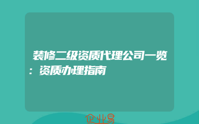 - 装修二级资质代理公司一览:资质办理指南