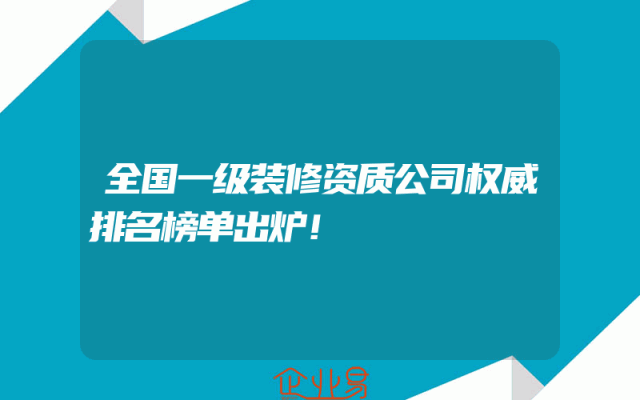 - 全国一级装修资质公司权威排名榜单出炉!