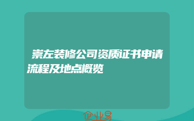 - 崇左装修公司资质证书申请流程及地点概览