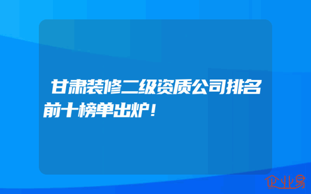 - 甘肃装修二级资质公司排名前十榜单出炉!