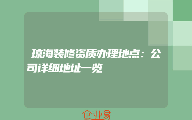 - 琼海装修资质办理地点:公司详细地址一览一、引言随着装修行业的快速发展,装修资质办理成为了从事装修业务的企业必须面对的重要事项。在琼海市,许多企业纷纷关注装修资质的办理流程与地点。本文将详细介绍琼海市装修资质办理的地点,帮助企业在寻求资质办理