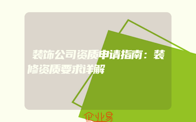 - 装饰公司资质申请指南:装修资质要求详解一、资质申请的重要性及概述在现代社会,装修行业逐渐成熟,对于装饰公司的运营能力和服务质量要求也越来越高。为了保障消费者的权益,维护市场秩序,装饰公司必须满足一定的资质要求。资质申请是公司走向规范化、专业