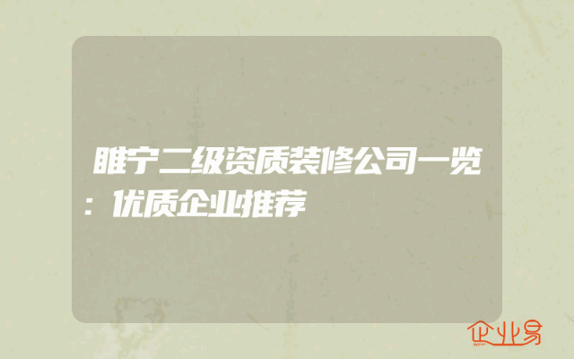 - 睢宁二级资质装修公司一览:优质企业推荐