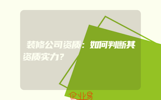 - 装修公司资质解析:如何判断其资质实力?随着装修市场的繁荣和发展,众多的装修公司涌现出来,如何在众多的装修公司中选择一个具备实力的合作伙伴成为业主们的关注点。判断装修公司的资质实力不仅仅看其资质证书,还需从多个角度进行考察。以下为您详