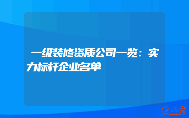 - 一级装修资质公司一览:实力标杆企业名单一、引言在我国建筑装饰行业,一级装修资质是衡量企业综合实力的重要标准之一。获得一级装修资质的企业,代表着其在设计、施工、管理等方面的实力达到了行业顶尖水平。以下是一级装修资质公司的一览,我们将其称为实力
