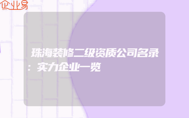 - 上海二级装修资质公司一览:精选企业列表一、引言随着城市化进程的加快,装修行业蓬勃发展,市场上涌现出众多优秀的装修企业。在上海这座国际化大都市中,众多专业的二级装修资质公司凭借出色的业绩和信誉赢得了广大客户的认可。本文将为您详细介绍几家在上海