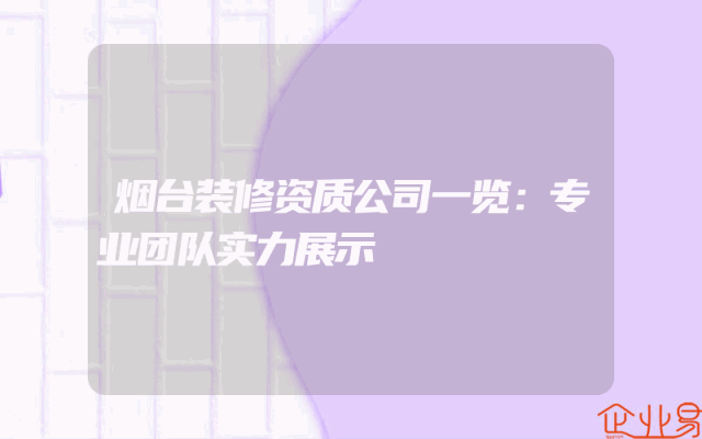 - 烟台装修资质公司一览:专业团队实力展示一、资质认证,打造专业装修团队在烟台,众多装修资质公司凭借其深厚的专业知识和实践经验,为广大客户提供高质量的装修服务。这些公司首先具备了国家认证的装修资质,严格按照相关法规和标准进行业务运营,确保每一项
