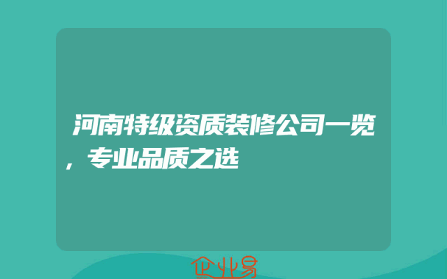 - 河南特级资质装修公司一览——专业品质之选一、引言随着社会的快速发展和人们生活水平的提高,装修行业逐渐成为热门行业。在河南省,众多装修公司中,拥有特级资质的装修公司是专业品质的有力保障。本文将为您介绍一些河南特级资质装修公司,帮助您在选择时做
