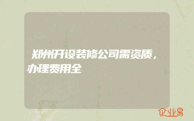 - 郑州开设装修公司需资质,办理费用全解析一、郑州开设装修公司的资质要求在郑州开设装修公司,首先需要了解相关的资质要求。根据当地政策规定,装修公司需要获得相应的营业执照、建筑装修资质证书等。这些资质是确保公司合法经营、保障消费者权益的重要凭证。