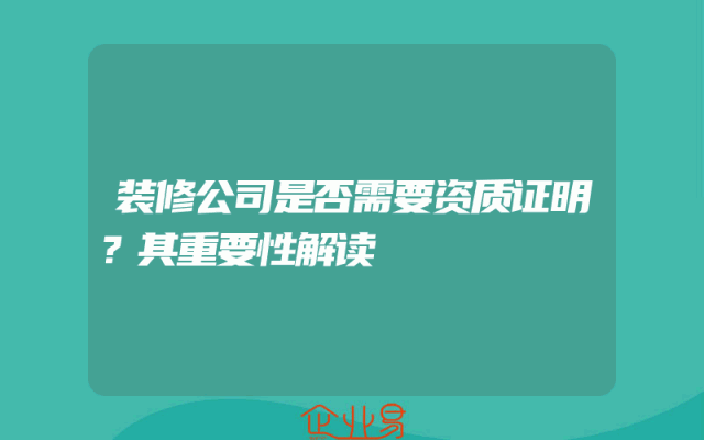 - 装修公司是否需要资质证明?其重要性解读一、装修公司的基本资质要求在装修行业,装修公司开展业务时通常需要具备一定的资质证明。这些资质证明文件是评估公司实力和信誉的重要依据,也是保障项目顺利进行的基础。二、资质证明的种类与重要性装修公司