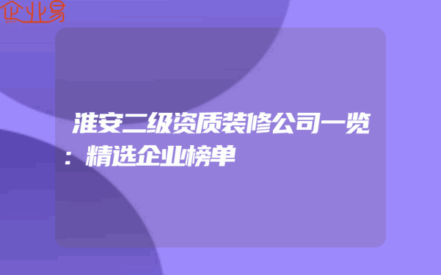 - 淮安二级资质装修公司一览:精选企业榜单一、背景介绍随着城市化进程的加快,装修行业迅速发展,市场上涌现出众多装修公司。淮安作为江苏省的重要城市之一,其装修行业也蓬勃发展。对于需要装修服务的企业和个人来说,选择一家具有专业资质和良好口碑的装修公