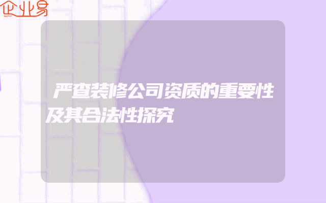 - 严查装修公司资质的重要性及其合法性探究一、装修公司资质的概念与重要性装修公司资质是指装修公司从事装修业务所必须具备的法定条件和等级标准。随着装修行业的迅速发展,市场竞争日益激烈,客户对装修质量的要求也越来越高。在这样的背景下,严查装修公司的