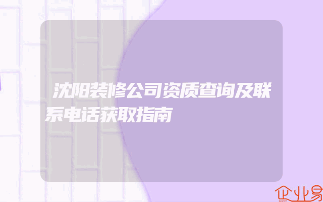 - 沈阳装修公司资质查询及联系电话获取指南一、了解装修资质的重要性和分类装修公司在建筑行业中扮演着至关重要的角色,因此对其资质的查询十分必要。了解不同类别的装修资质(如设计资质、施工资质等)对于确保装修工程的品质和安全至关重要。资质不仅反映了公