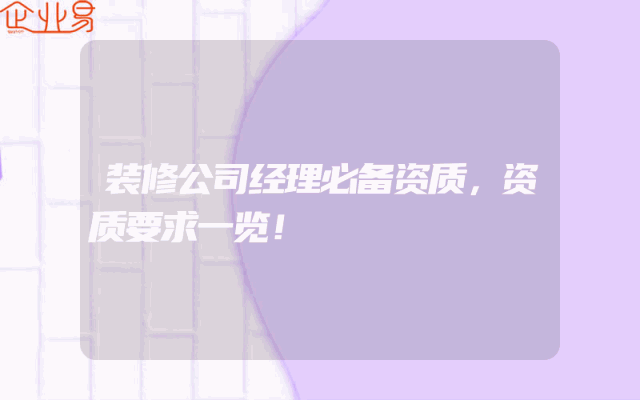 - 装修公司经理必备资质,资质要求一览!