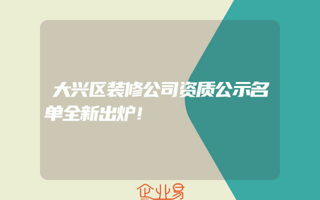 - 大兴区装修公司资质公示名单全新出炉!