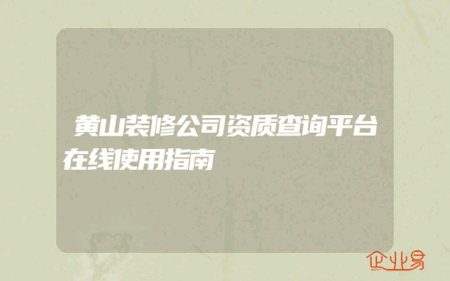 - 黄山装修公司资质查询平台在线使用指南