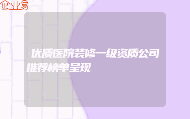- 优质医院装修一级资质公司推荐榜单呈现