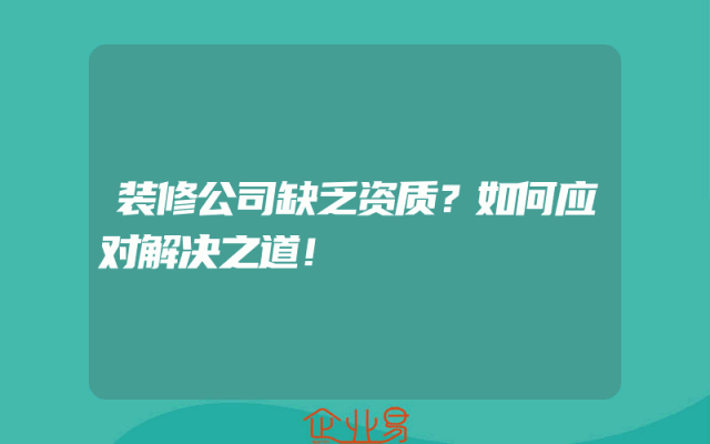 - 装修公司缺乏资质?如何应对解决之道!