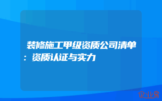 - 装修施工甲级资质公司清单:资质认证与实力