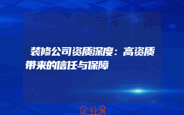 - 装修公司资质深度:高资质带来的信任与保障