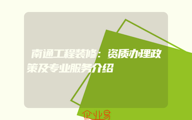 - 南通工程装修:资质办理政策及专业服务介绍