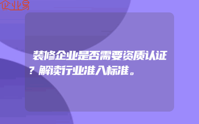 - 装修企业是否需要资质认证?解读行业准入标准。