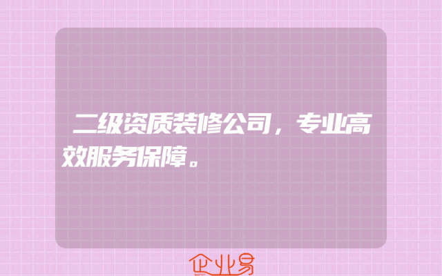 - 二级资质装修公司:专业高效服务保障一、专业资质认证,打造信赖品牌在当今竞争激烈的装修市场,拥有二级资质证书的装修公司是企业实力和专业水准的权威体现。我们公司经过多年发展和深耕,成功获得了二级资质认证,这标志着我们公司具备了承接各类大