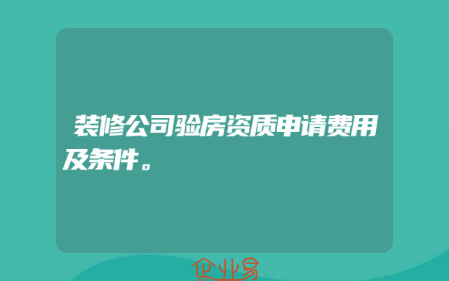 - 装修公司验房资质申请费用及条件解析一、验房资质的重要性在现代装修行业中,验房作为确保装修质量的关键环节,其重要性日益凸显。对于装修公司而言,拥有验房资质是展示专业能力和提升竞争力的关键。因此,了解验房资质的申请费用及条件,对于想要进入这一领