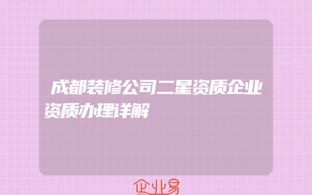 - 成都装修公司二星资质企业资质办理详解一、了解二星资质企业资质的重要性在成都的装修行业,企业资质是展示公司实力和服务质量的重要标准之一。对于想要提升服务质量、扩大业务范围的装修公司来说,办理二星资质企业资质是非常必要的。这一资质不仅代表了公司