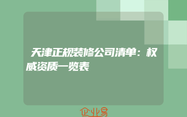- 天津正规装修公司清单:权威资质一览表天津地区正规装修公司概述在天津这座繁荣的都市里,众多的装修公司如雨后春笋般涌现。对于寻求装修服务的消费者而言,了解哪些公司是正规且具有权威资质的至关重要。本文将为您呈现天津正规装修公司的清单,以帮助您做出