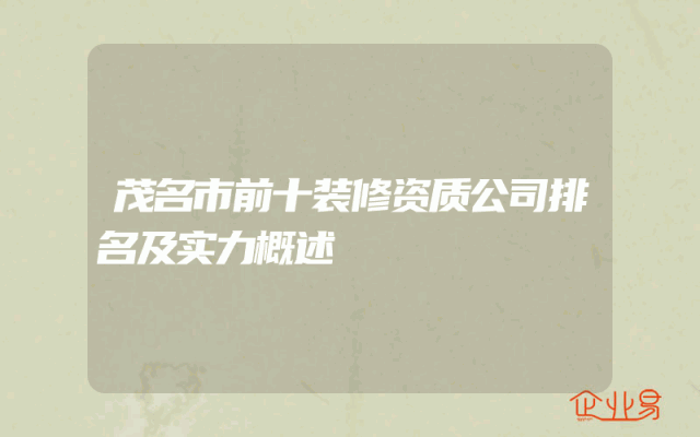- 茂名市前十装修资质公司排名及实力概述茂名市装修行业的佼佼者——前十装修资质公司排名及实力概述茂名市作为广东省的重要城市之一,其装修行业在近年来得到了迅猛发展。众多装修公司在激烈的市场竞争中脱颖而出,接下来让我们一同了解茂名市前十装修资质公司